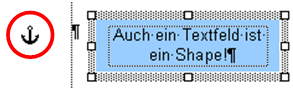 - Kopiert oder schneidet man diesen Absatz aus, dann wird auch das Shape, das an diesem Absatz hängt, mit ausgeschnitten oder kopiert.