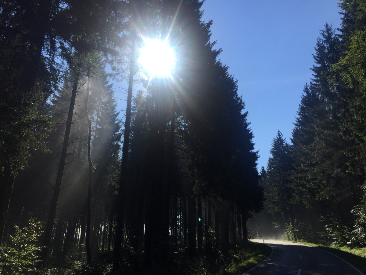 Hinter Bayreuth wird es gleich mal happig, der Anstieg in Richtung Weidenberg weist zweistellige Prozentwerte auf. Der Einstieg ins Fichtelgebirge ist dagegen moderat, auf einem alten Bahndamm geht es nach Warmensteinach. Vor Bischofsgrün sogar noch einmal runter. Pause beim Bäcker in Bischöfsgrün und ich darf mich an die Hygiene- und Schutzmaßnahmen unterwegs gewöhnen. Cola und Kuchen gibt es nicht nur für Geld auch eine Kontaktadresse muss man in diesen Zeiten angeben.