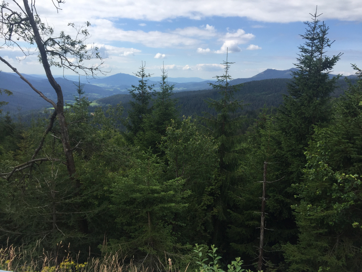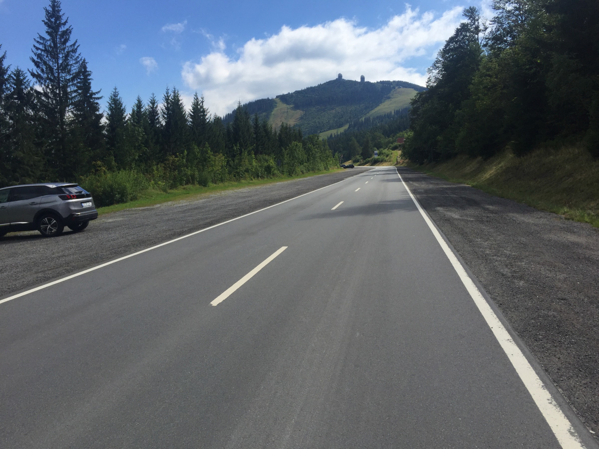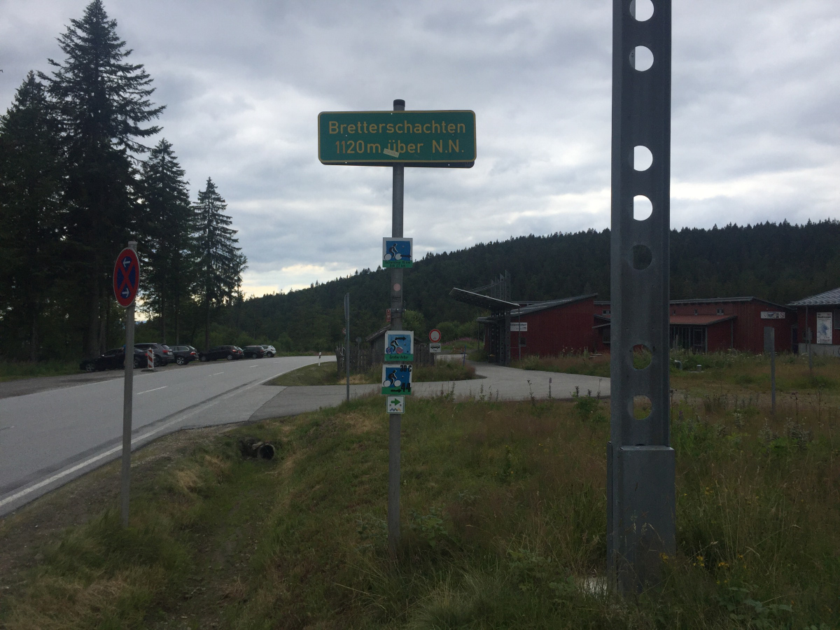 Durch die Baustelle hinter Furth im Wald lassen mich die Bauarbeiter durch, klappt auch ganz gut mit dem Grünstreifen und so lang ist sie dann auch wieder nicht. Die ein oder andere Sendeanlage auf den umliegenden Bergen verwirren mich. Ist das nun schon der Große Arber? Aber nein, ich muss erstmal noch ein ganzes Stück hoch. Hinter Lohberg geht es dann zur Sache und hoch auf über 1000 m. An den Talstationen der Seilbahnen und am Arbersee sind die Parkplätze gut gefüllt. Fahrradfahrer treffe ich hingegen kaum. Vom Arber direkt nur noch runter nach Bodenmais … das war leider eine Fehleinschätzung und bis Bretterschachten ging es noch mal ein gutes Stück den Berg hoch.