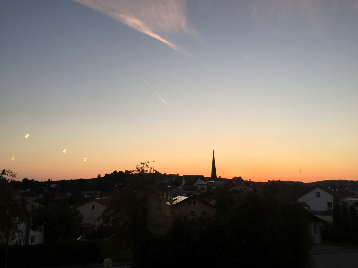 Die Mittagspause besteht aus einem alkoholfreien Weißbier, die Küche im Gasthof hat nur bis 14:00 Uhr geöffnet, ich komme um 13:58 Uhr dort an. Also schnell weiter. Dafür wird es jetzt etwas abwechslungsreicher und irgendwann kündigen die Schlote am Horizont das Chemiedreieck in Burghausen an. Zwischenzeitlich versuche ich immer wieder, jemanden am Campingplatz südlich von Burghausen zu erreichen, muss mich aber mit dem Anrufbeantworter begnügen. In Burghausen stehen schon 140 km auf dem Tacho und die Frage nach einer Unterkunft für die Nacht drängt sich immer mehr auf. Auf booking.com finde ich ein Gasthof in der Emmerting, ein paar Kilometer außerhalb. Also raus aus der Stadt und wieder ein Stück zurück. Zimmer, Dusche, Abendessen und das Frühstück im Gasthof Schwarz lassen keine Wünsche offen.