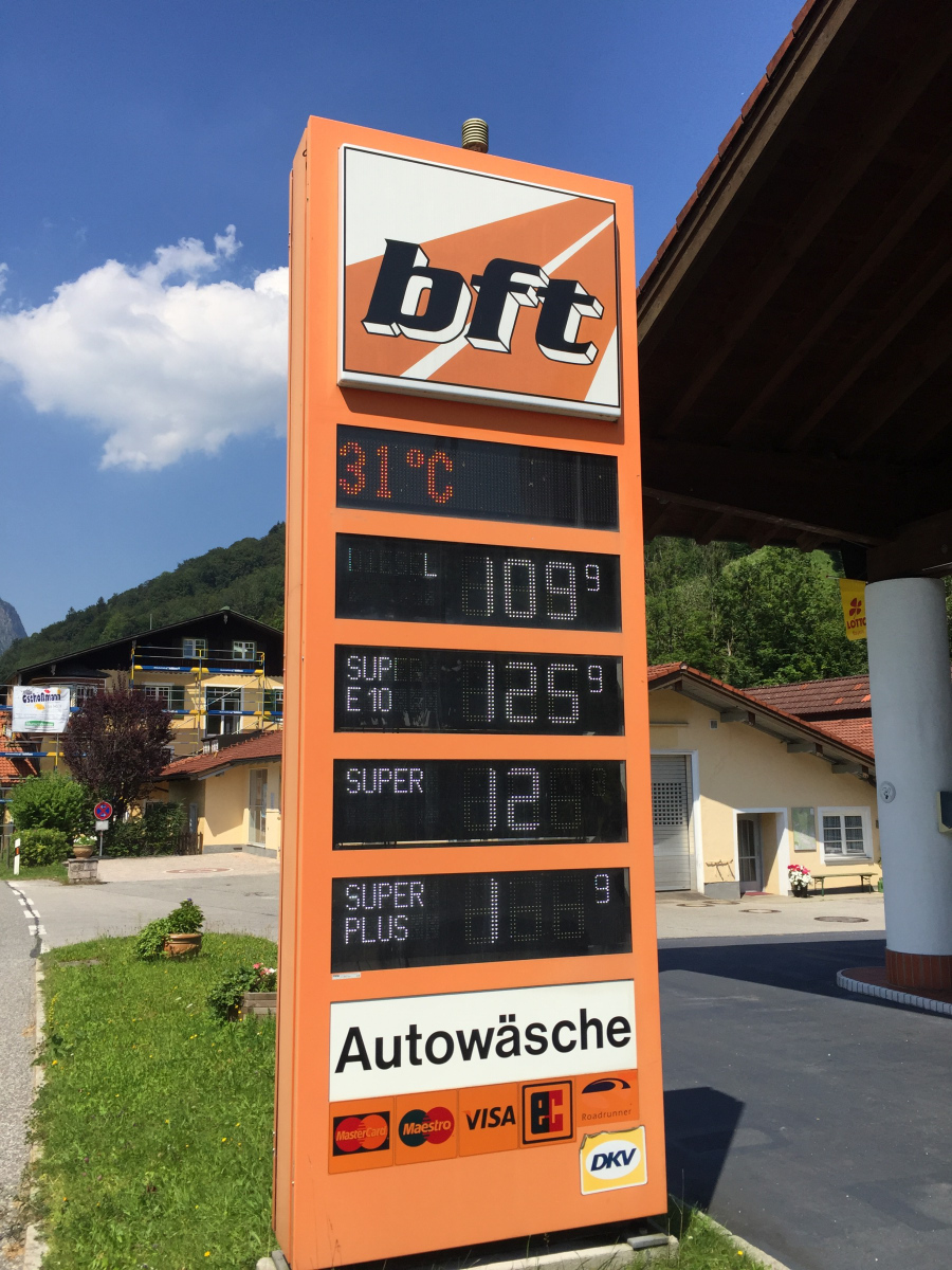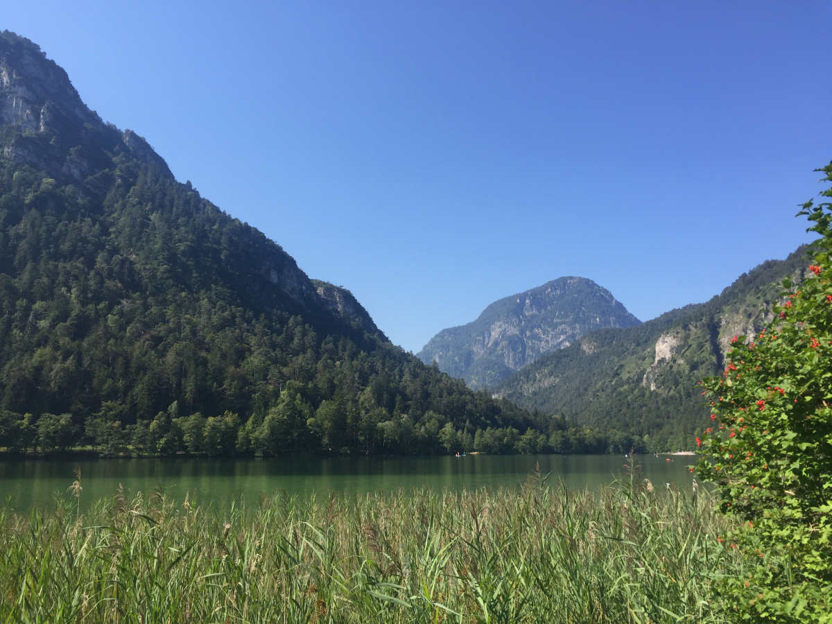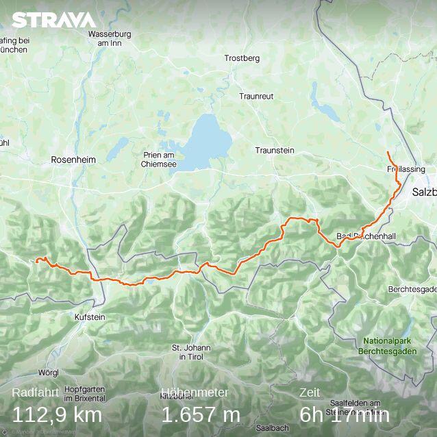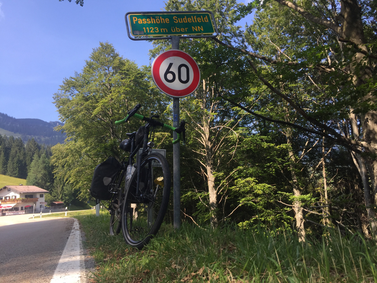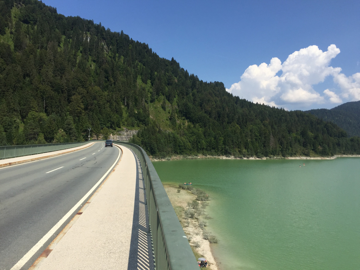 Heute geht es mit dem reduzierten Gepäck weiter von Ost nach West durch die bayrischen Alpen. Nach Bad Reichenhall wartet der erste undramatische Anstieg hoch zum Thumsee auf mich, dann folge ich der B305, vorbei am Weitsee. Reit im Winkel trägt seinen Namen zu Recht, hier in einer der südlichsten Ecken Deutschlands ist schon fast alles Österreich. Die eiskalte Cola ist einfach nur köstlich und liefert Zucker für die nächsten Kilometer. Über Österreich kürze ich ab und fahre Richtung Kufstein/Oberaudorf.