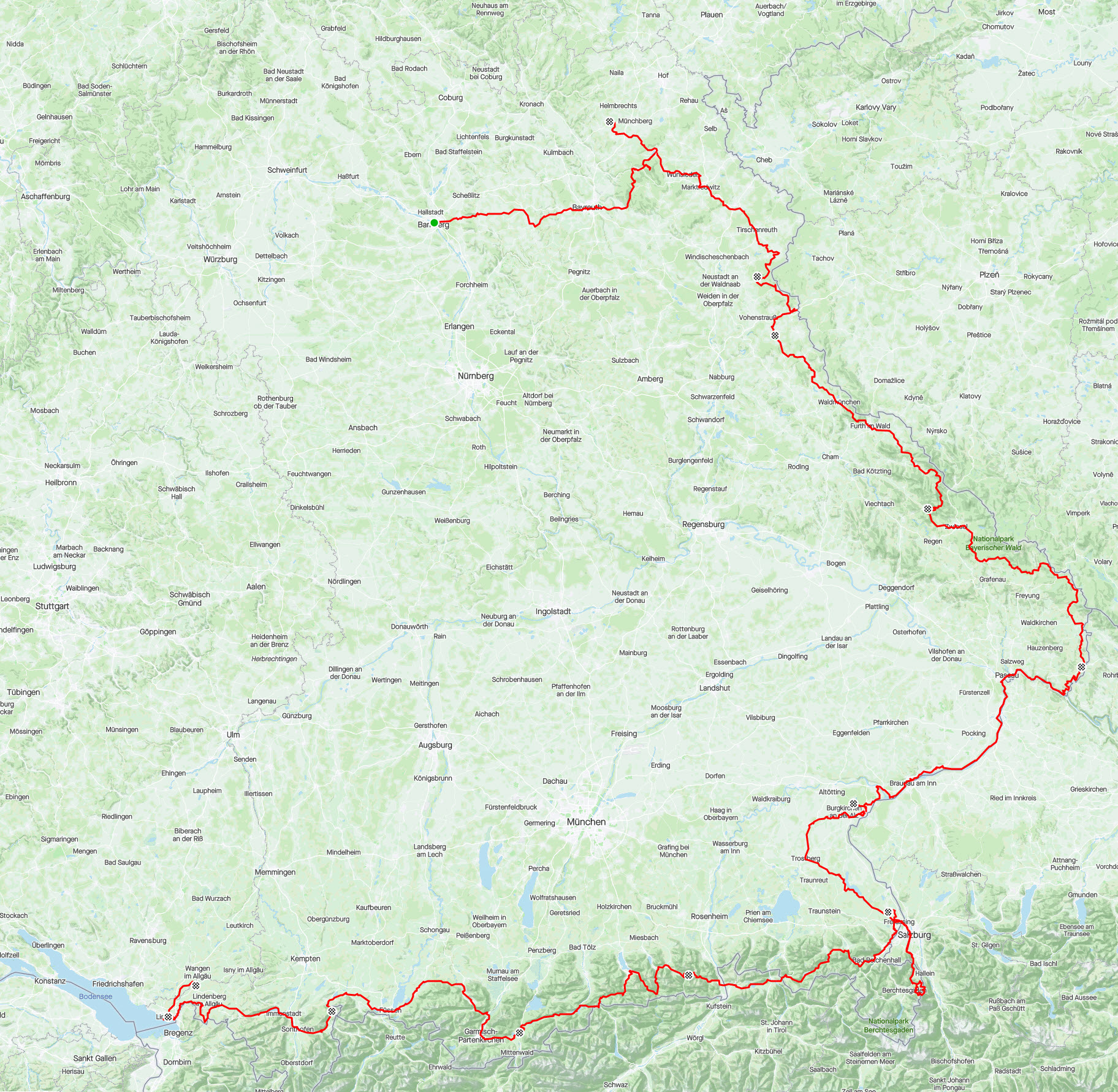 Nach langer Pause endlich wieder eine längere Radreise. Diesmal mit dem Fahrrad von Bamberg nach Osten und dann entlang der Grenze zu Tschechien und Österreich innerhalb von Bayern bis nach Lindau am Bodensee.