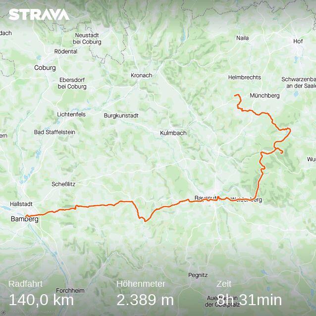 Pünktlich um 8 Uhr in der Früh schwinge ich mich auf mein Reiserad und verlasse Bamberg in Richtung Osten. Die Fränkische Schweiz ist in der Frische des Morgens schnell erreicht. Nicht ganz so schnell geht es mit dem ganzen Gepäck, inklusive Zelt, Schlafsack und Kocher den Tiefenellerer Berg hoch. Über Hollfeld weiter nach Bayreuth und endlich raus aus bekanntem Terrain, dass ich auch von meinen vielen Tagestouren schon gut kenne.