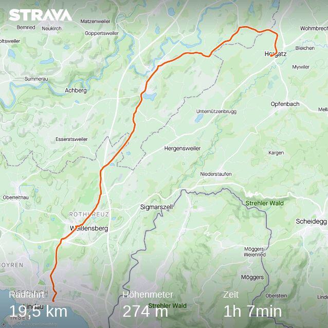 Die Tour endet mit einer kleinen Fahrt durch den Regen nach Hergatz. Ab Lindau fahren keine Züge und diese Art des Schienenersatzverkehrs ist immer noch die schnellste. Ich verpasse die Ideallinie und fahre zum Abschluss der Tour doch noch kurz durch ein anderes Bundesland: Baden-Württemberg.