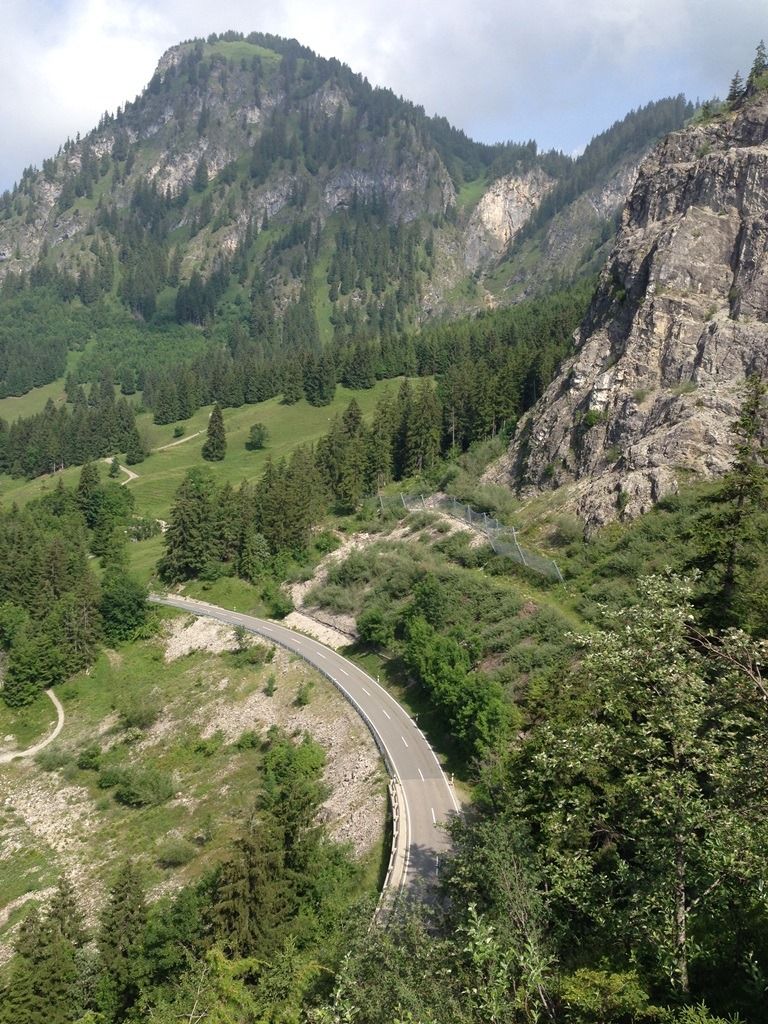Großer Alpsee - Immenstadt - Sonthofen - Hindelang (Cola, Apfeltasche) - Oberjoch - Grenze DE/AT - Tannheimer Tal - Grän - Haldensee - Weißenbach am Lech - Lechtal - Steeg (Redbull, Snickers) - Warth - Hochtannbergpass (1675 m üNN) - Schoppernau - Mellau - Reuthe - einheimischen Biker getroffen, der hat mir den alten Bahndamm (Asphalt und Schotter) nach Egg und weiter an der Bregenzer Ache empfohlen - Kraftwerk unterhalb Alberschende - böser Anstieg nach Alberschwende - B200 nach Bregenz - Schwarzach - Wolfurt - Kennelbach - Bregenz - Hörbranz - Grenze DE/AT - Lindau am Bodensee