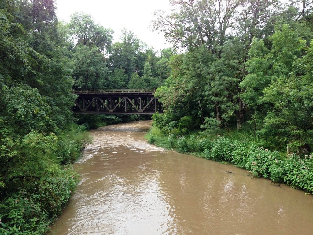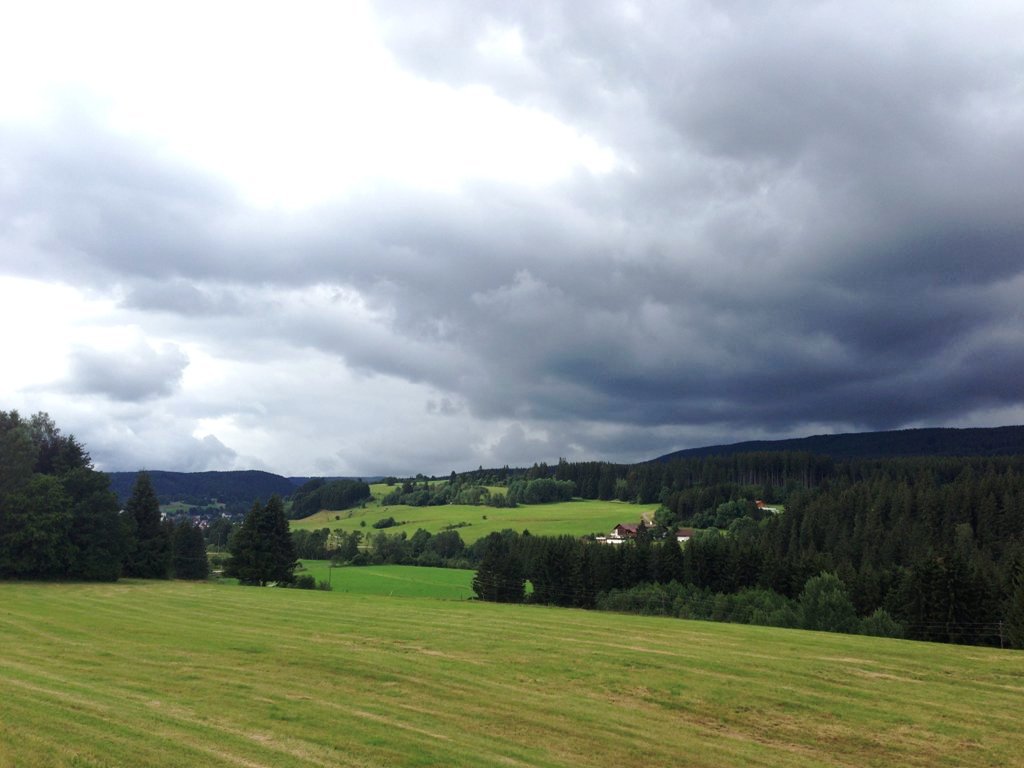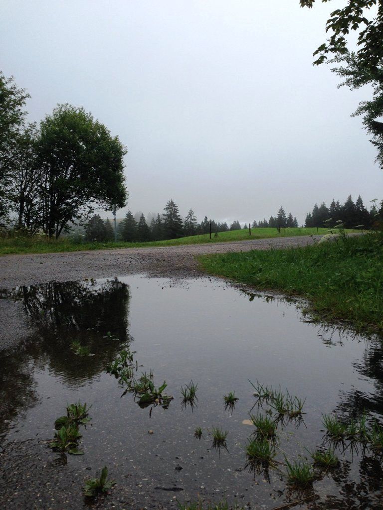 Bedecker Himmel und Hochwasser am Neckar, der unbefestigte Radweg hat das Rad und mich in ein gesprenkeltes Matschwerk verwandelt. Das Wasserwerk in Neckarburg kurz vor Rottweil bietet kostenlos Trinkwasser. Ab dort hört dann auch der beschauliche Neckarradweg auf und der Schwarzwald ruft mit den ersten Höhenmeter. Mittagspause in Villingen, anschließend ging es so richtig in den Schwarzwald. In Lenzkirch erst aus Versehen Richtung Bonndorf abgebogen, dann kam auch noch ein Schauer runter. Im Café am Abzweig nach Schluchsee gab es einen Schokocroissant und eine Tasse Kaffee. Auf regennasser Straße hoch nach Fischbach oberhalb vom Schluchsee. Zum ersten Mal über 1000 m üNN unterwegs. 16,5 °C können verschwitzt bergab ziemlich kalt sein. Der Schluchsee bot eher ein tristes Bild. Also noch ein Stückle weiter bis Häusern.