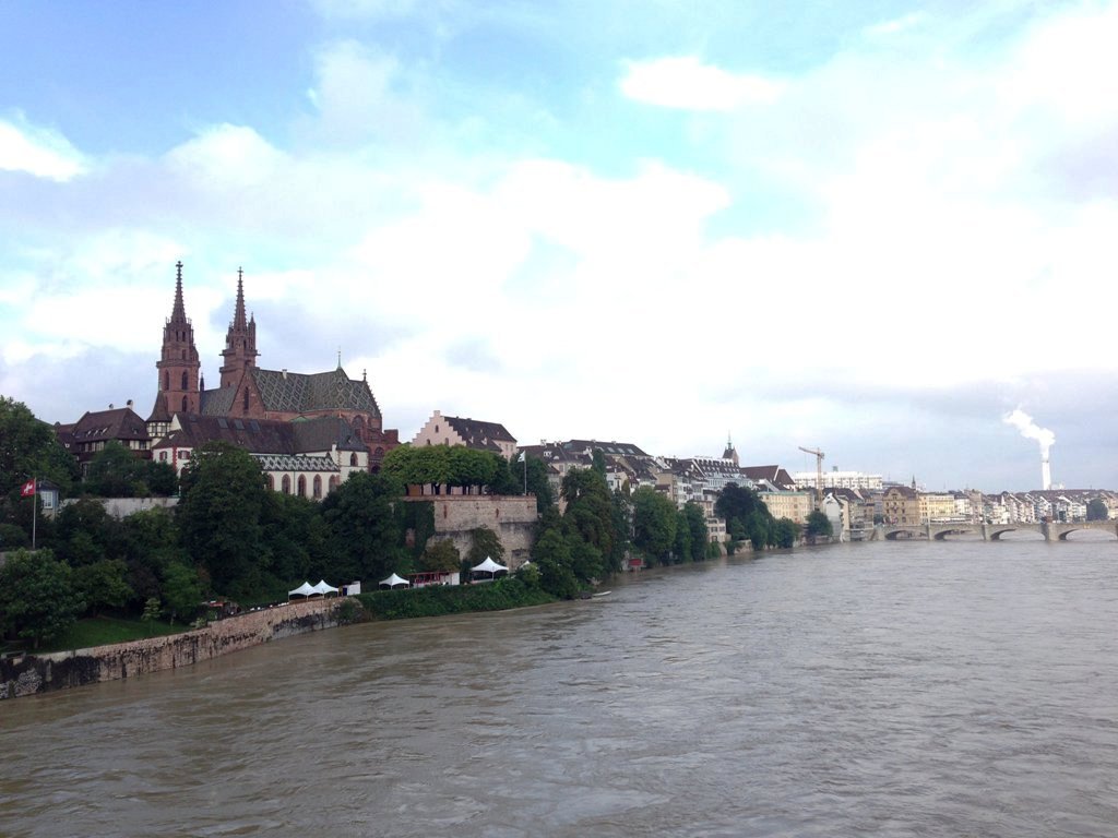 Der Radcomputer hat einen Wasserschaden, funktioniert zwar noch, aber das Display lässt sich nicht ablesen. Die Beschilderung der Jura-Route sagt, dass es von Saignelégier bis Basel 92 km sind. Dazu kamen noch ein paar Kilometer durch Lörrach und Rumgeirre durch Basel. Die Anstiege auf den Challpass, Col de la Croix und vor allem raus aus St. Ursanne waren heftig. Nebenstraßen sind ein bisschen steiler als die üblichen Landstraßen im Gebirge. Wetter: heute sonnig, mit ein paar Wolken aber komplett trocken. In der Sonne warm, in den Anstiegen heiß, Abfahrten mit Windjacke.