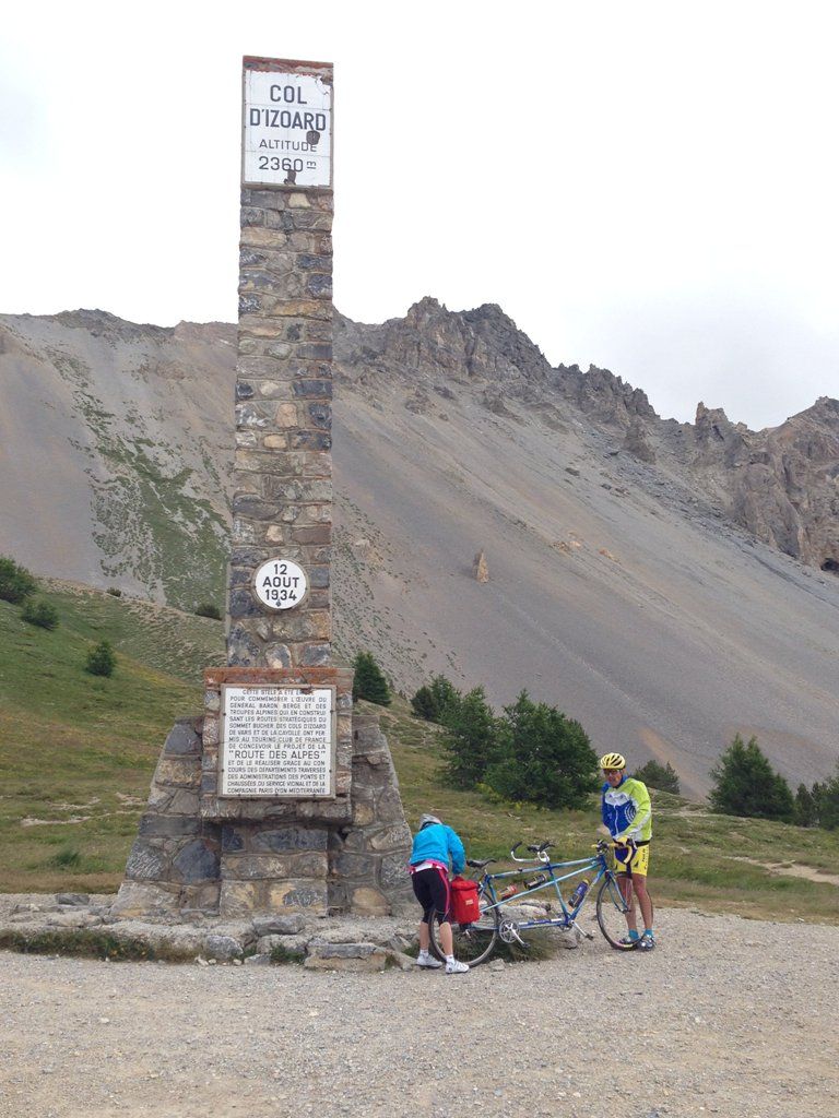 Wie schon am Galibier stand in einer der letzten Kurven ein Fotograph und knipste alles und jeden, der sich nach oben bewegte. Die Bilder kann man dann – sicherlich für teures Geld – auf www.griffephotos.com erwerben. Am Izoard traf ich dann auch wieder auf das Randem fahrende Pärchen, das mich bei einer kurzen Pause im Anstieg überholt hatte. Schon kurios, was sich neben den üblichen Verdächtigen wie Rennrad, Motorrad, Auto und Wohnmobil so alles den Berg hoch quält (?) bzw. bewegt: Heute traf ich auf einen Jogger, einen Sommerlanglaufskier, zwei schwer beladene Reiseräder, eine Familie mit Kinderanhänger (von ihr gezogen) und Liegerad-Normalrad-Tandem-Mix (er mit dem älteren Kind), das besagte Tandem, einer Mutter mit Sohn aus Italien (sie hatte eine extreme Untersetzung am Rad, mit einer Kurbelumdrehung ist sie sicherlich knapp 30 cm weit gekommen) und den normalo Touristen, die sich ein Mountainbike ausleihen und meinen, sie könnten auch mal so einen Pass hochfahren …