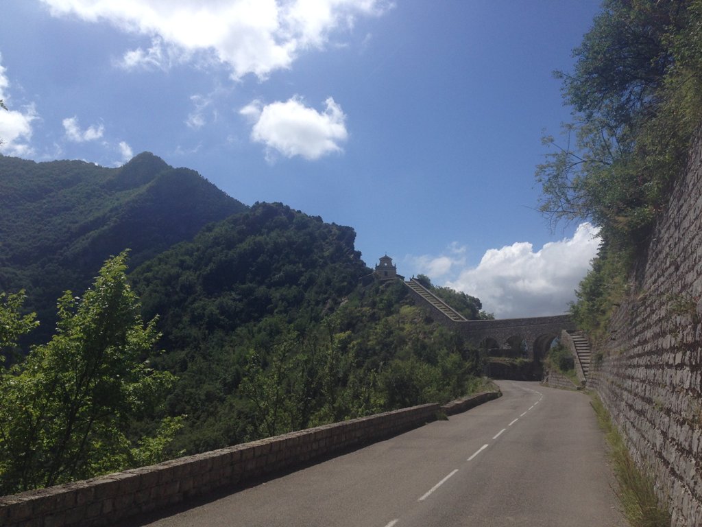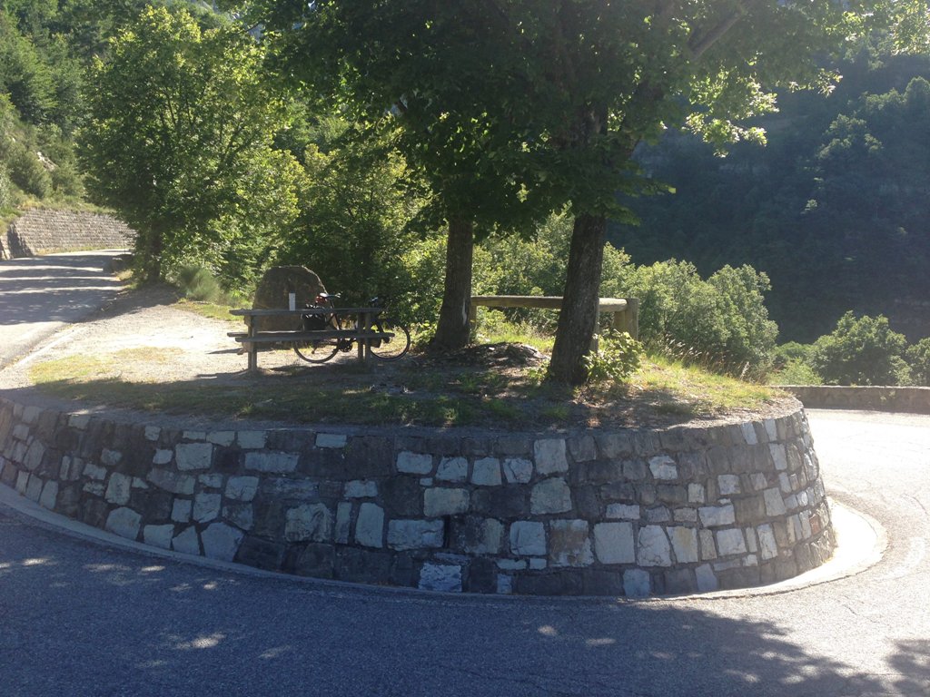 Nach unendlichen, spektakulären Kurven führte die Abfahrt schließlich runter in das besagte Tal der Tinée und hier ging es immer weiter runter. In St-étienne-sur-Tinée gab es dann die ersehnte Cola (und ne Pizza und nen Kaffee dazu), der Tacho zeigte hier schon gute 50 km an.