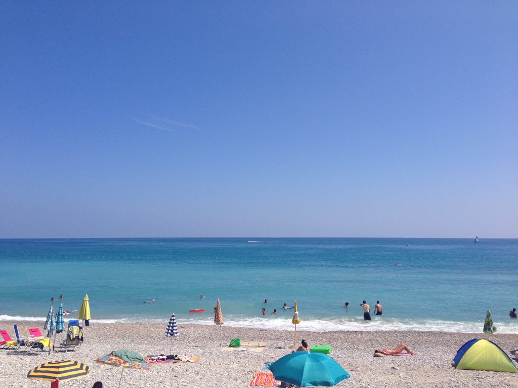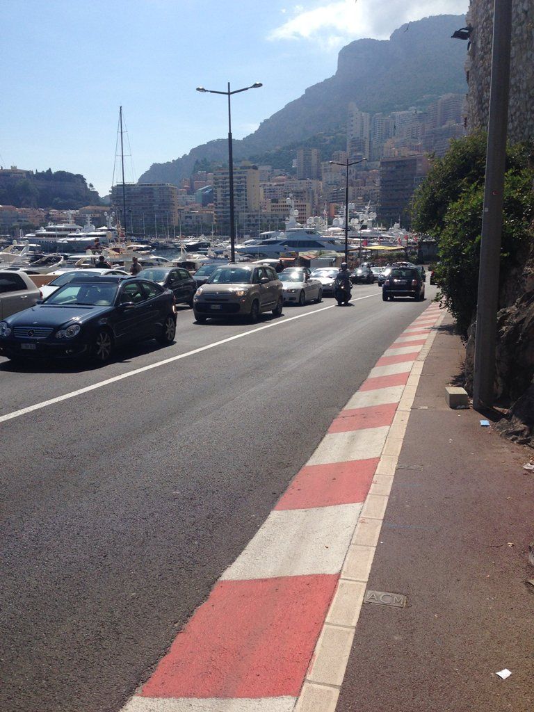 Et voilà, da war es endlich, das Meer! Am Kieselstrand von Menton aalten sich ein paar Sonnenhungrige, ich musste aber noch weiter bis Nizza. Dank hrs.de hatte ich ein kostengünstiges Hotel in der Nähe des Bahnhofs ergattert … Ich versuchte möglichst unten an der Küste zu bleiben. Auf weitere Höhenmeter hatte ich irgendwie keinen Bock mehr, nicht bei dieser Hitze und diesem Verkehr. So kam es, dass ich mitten durch Monaco geradelt bin, durch verbotene Tunnellabyrinthe, einmal in eine Sackgasse, vorbei an meinen zukünftigen Jachten und über die Curbs der Formel Eins Rennstrecke, die ja bekannterweise durch die Stadt führt. Wo Monaco aufhörte und Frankreich wieder began, hat sich mir nicht erschlossen, an der Küste steht ein Haus am anderen und teure Autos fahren überall rum.